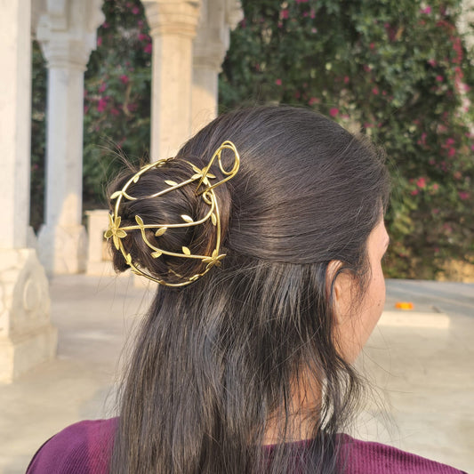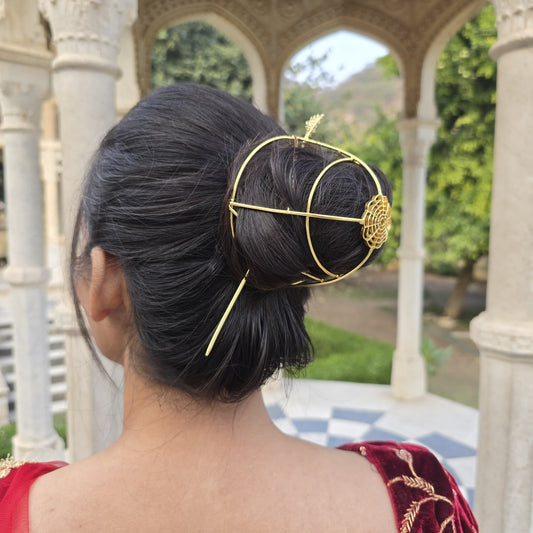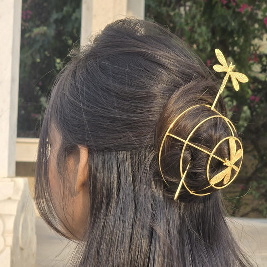 Handcrafted Gold-Plated Brass Hair Bun & Stick – Dragonfly Design